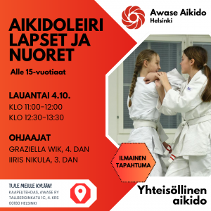 Lasten ja nuorten (alle 15-vuotiaat) aikidoleiri lauantaina 4.10.2025